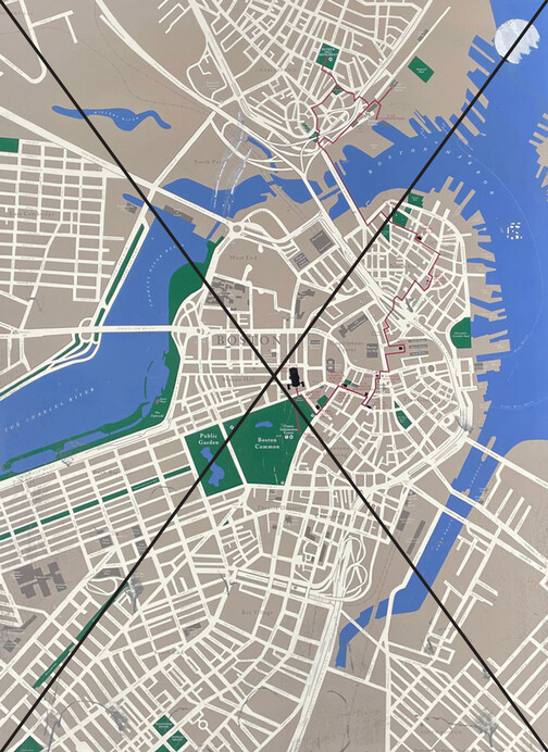 The city map was perhaps the most in need of attention. Its outdated, pre-Big Dig streetscape and missing landmarks made it feel like a relic. We redrew it from the ground up—introducing lighter tones, clear typography, modern styling, and highlighted T station labels. Walk-time radiuses show the Common at the heart of the city and help visitors orient themselves to explore beyond the park’s boundaries.