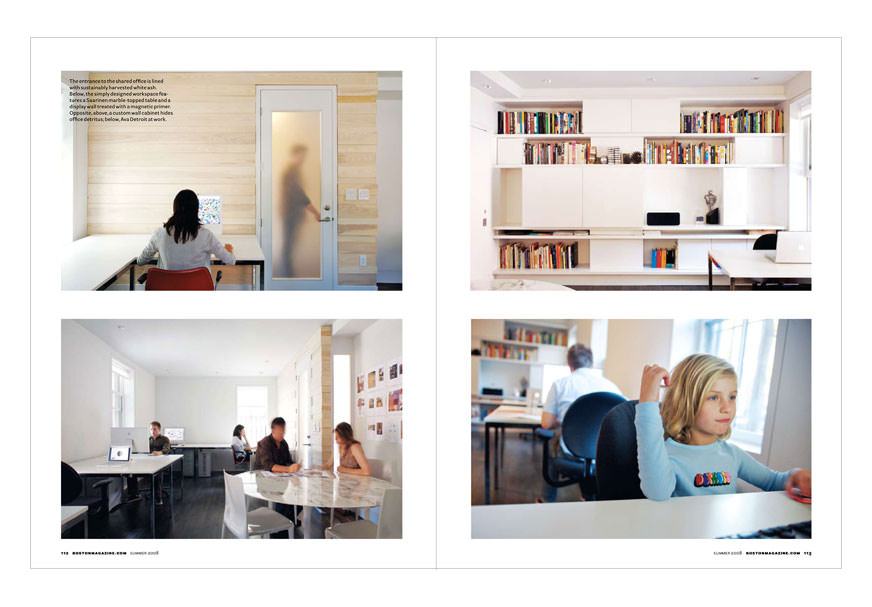Fall will be here before you know it, so pick up the summer issue of Boston Home for a feature on the South End home of Visual Dialogue. The article details the renovation of the 1850 row house into a modern space for work (on the bottom 2 floors) and living (on the 3 floors above). This adaptive reuse project also won a 2008 Boston Society of Architects award for Stern McCafferty, the architects we worked with closely to achieve our vision for the building.