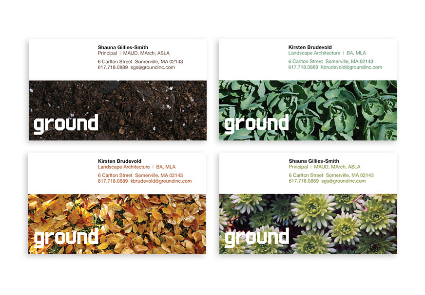 Visual Dialogue covered a lot of ground in creating the brand identity and website for a new landscape architecture firm specializing in green roofs. The firm, appropriately named Ground, is headed by Shauna Gillies-Smith, previously design director at Martha Schwartz, Inc. and currently teaching at Harvard Graduate School of Design. With their new identity taking root, Ground can now focus on their clients’ projects from Boston to Dubai.