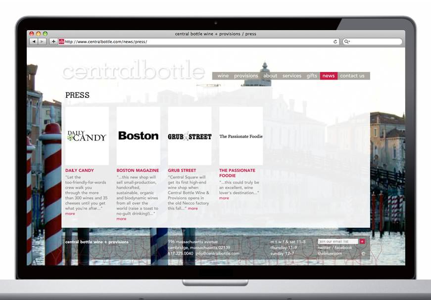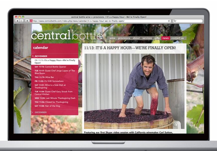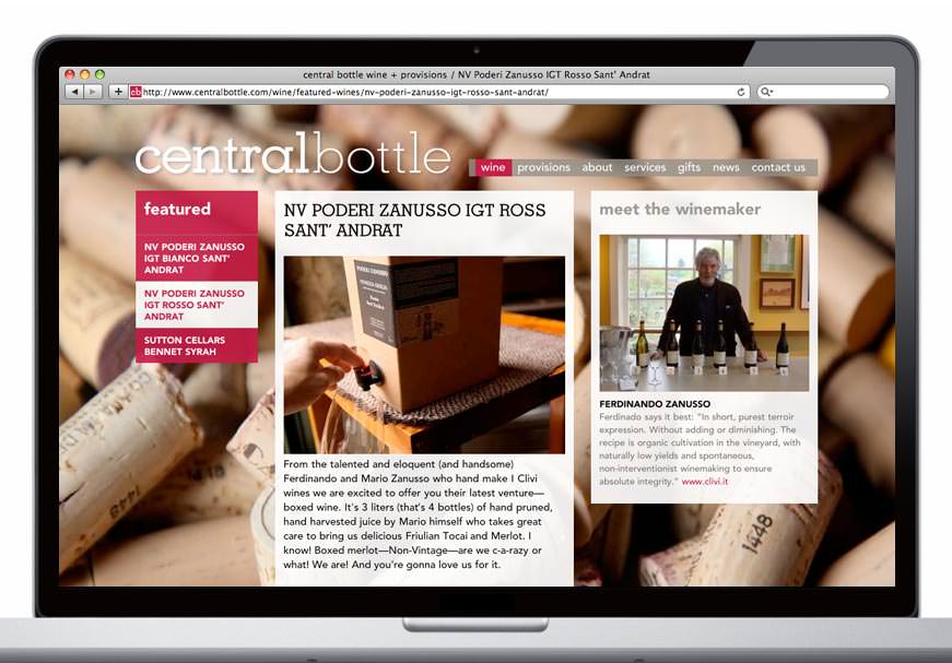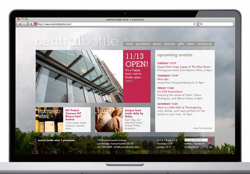 Inspired by Venetian enotecas—places to gather, eat, drink and buy wine—Central Bottle debuted in Cambridge this past weekend (along with website by Visual Dialogue). The store features events such as video sessions with winemakers Skyped in from around the globe, guest chef tastings, and a regular Thursday night wine bar. The website organizes all the goings on and allows the busy Central Bottle team to easily (and frequently) update all the content. Stop in soon for a glass or a bottle.