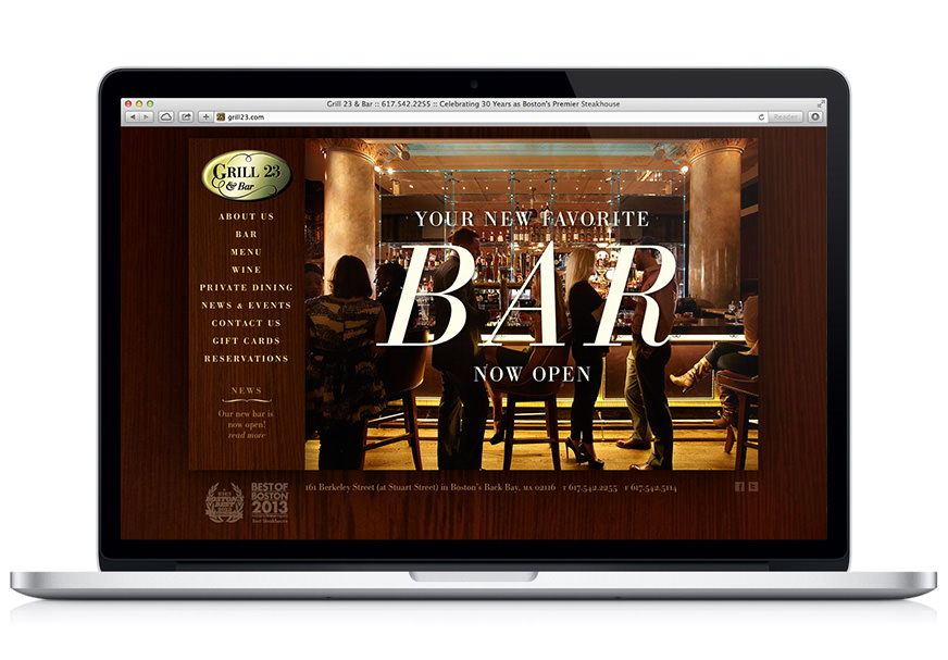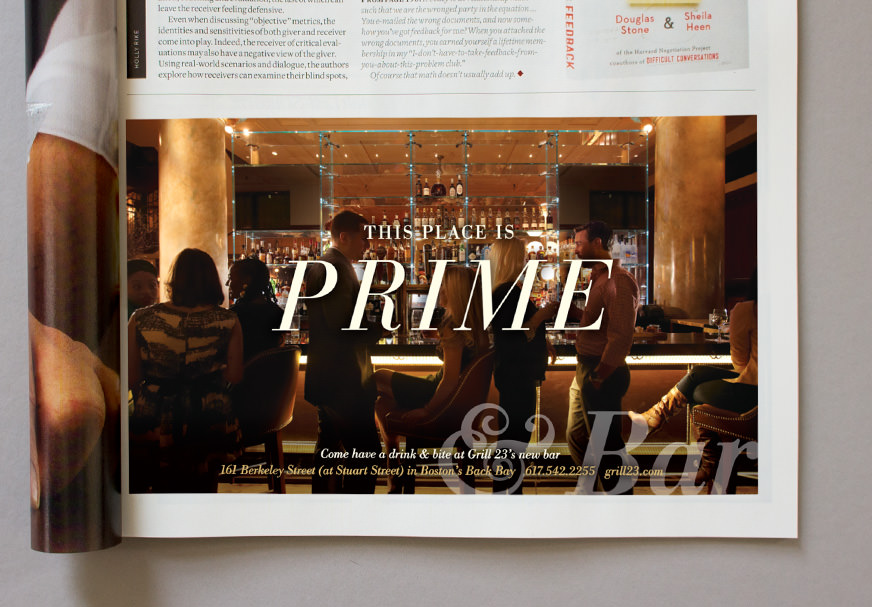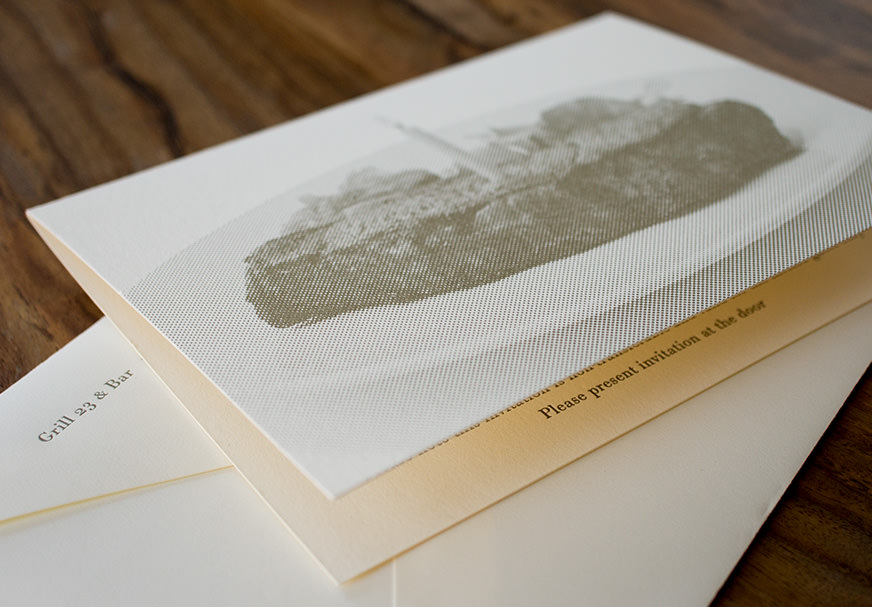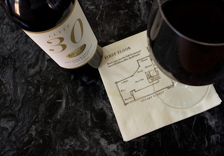 It’s rare for a restaurant to celebrate 30 years in business but that’s what Boston’s classic steakhouse, Grill 23, did last night. Over 500 guests ate, drank, and reminisced about the good times they’ve shared there over the years (see #grill23at30). Visual Dialogue created the letterpressed invitation and giveaways for the party. We also designed a print and online campaign introducing the new first floor bar that opens onto Berkeley Street. Grill 23 is certainly a restaurant in its prime. Cheers to 30 more years.