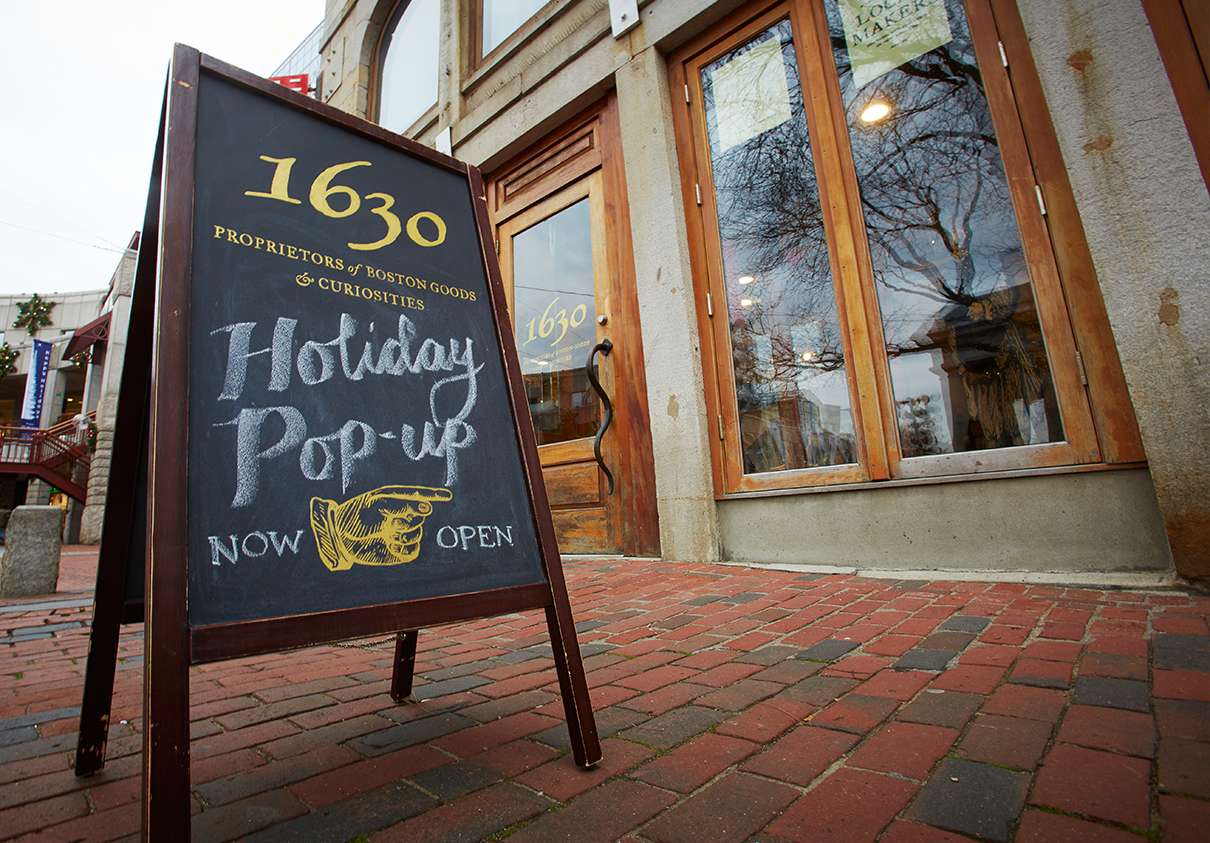 After a successful six weeks on Newbury Street, we’ve moved our pop-up shoppe across town. Located at the corner of the South Marketplace, 1630 has transformed a prime corner of Faneuil Hall Marketplace into our historical gift and curiosities shoppe. Stop by soon for great Boston finds you can’t get anywhere else.