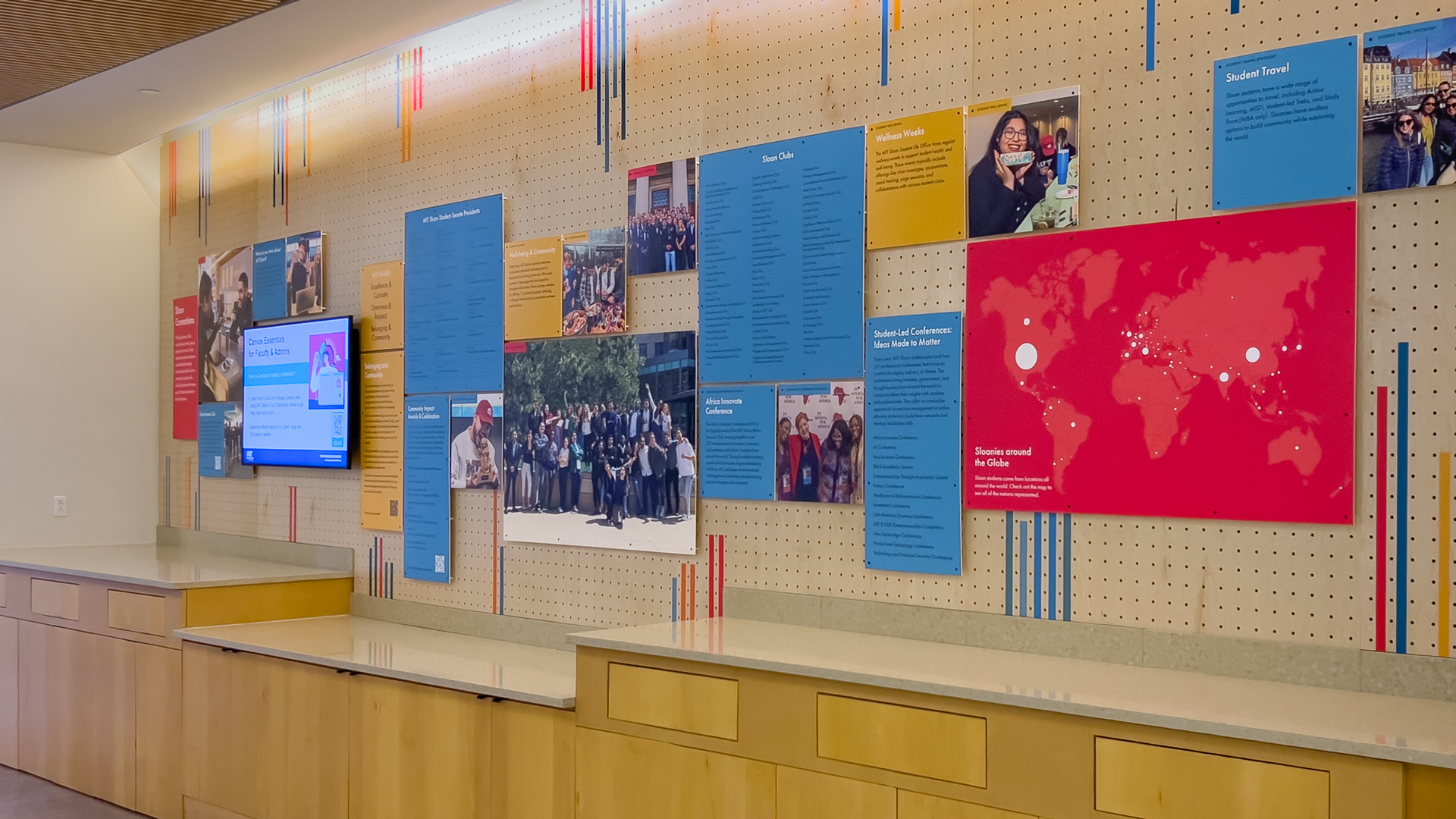 It’s back-to-school time, and our latest project goes back to MIT. Specifically the Sloan School of Management, where we created a flexible display system to show off the best of student life—including over 80(!) Sloanie clubs.